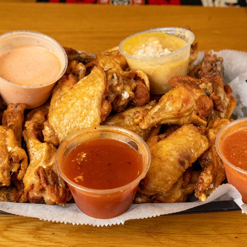 120 wing dings/ 2 sauces/ your choice of wings tossed or sauce on the side! Sauce will come in pints if on the side
