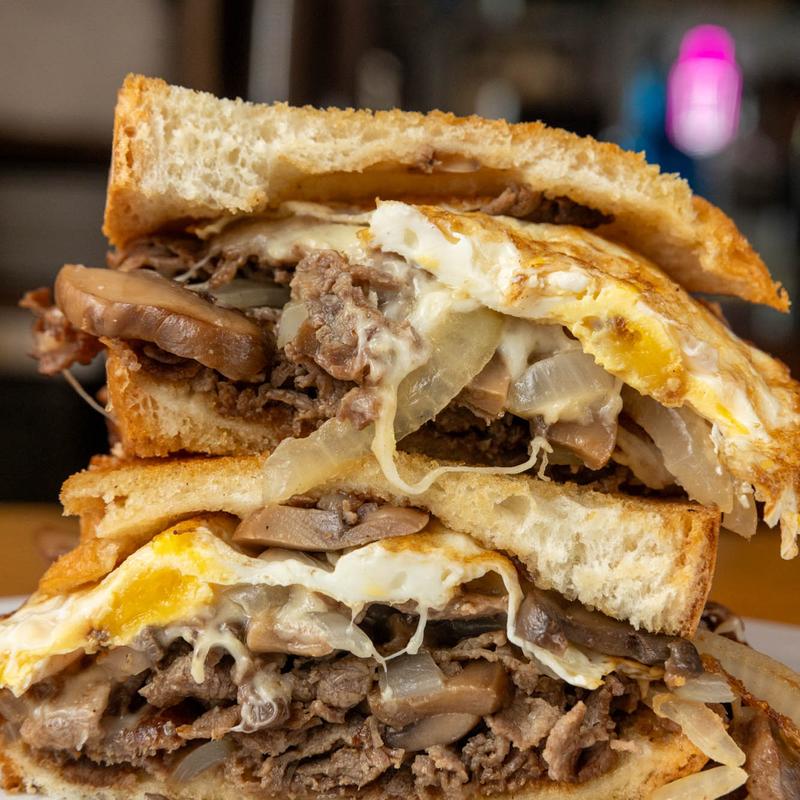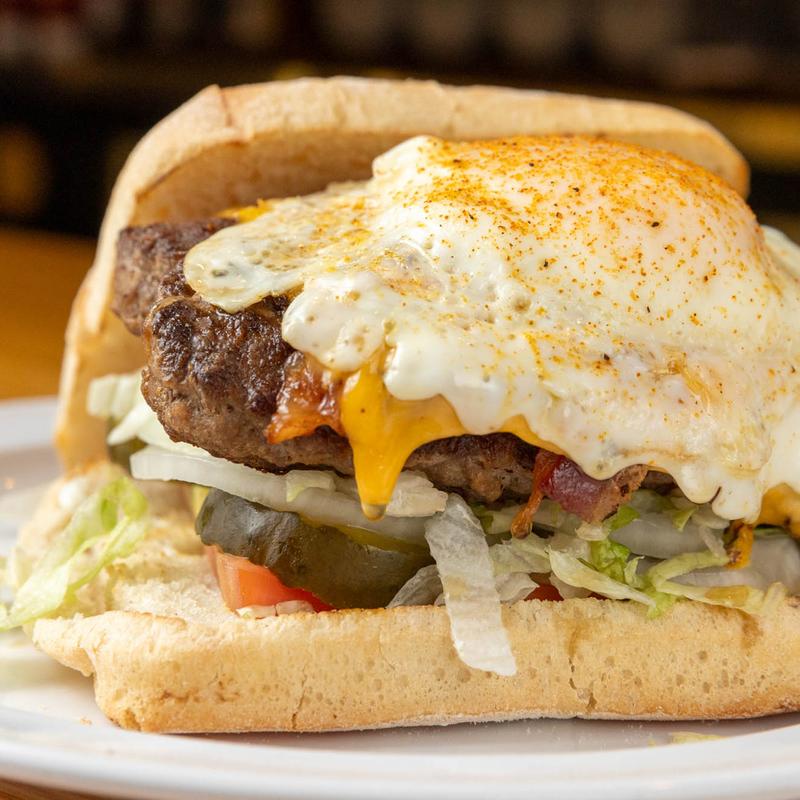 Eggs, bacon, lettuce, and tomato served on a Ciabatta bun with your choice of cheese.